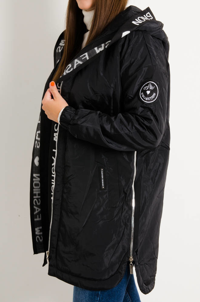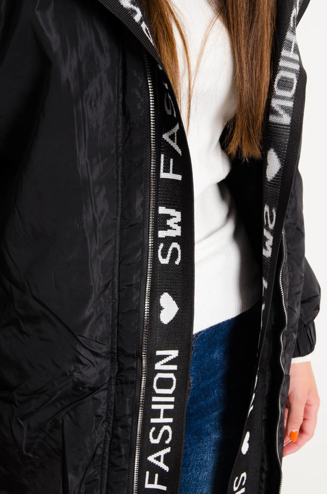 KURTKA Z OZDOBNĄ GUMĄ I ZAMKAMI PO BOKACH- CZARNA