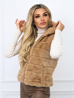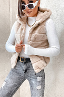 BEŻOWA FUTRZANA KAMIZELKA - BEZRĘKAWNIK