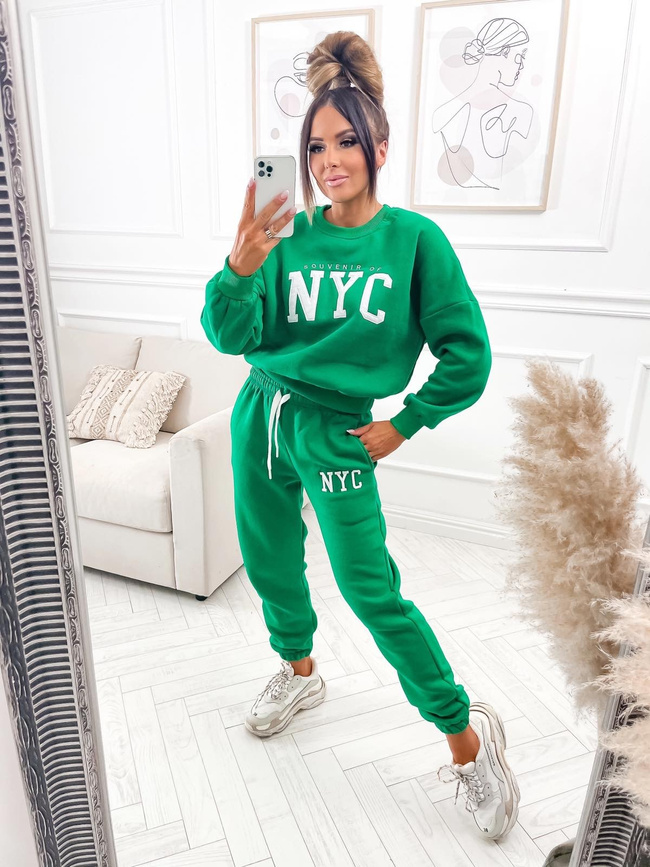 KOMPLET DRESOWY Z OZDOBNĄ NASZYWKĄ- ZIELONY