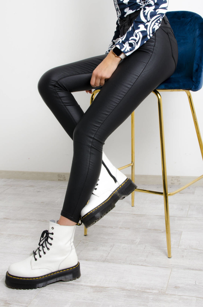 CZARNE WOSKOWANE SPODNIE Z WYSOKIM STANEM- OCIEPLANE