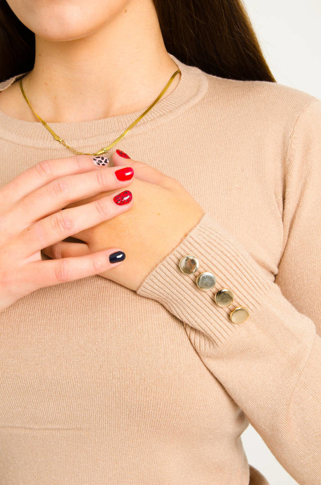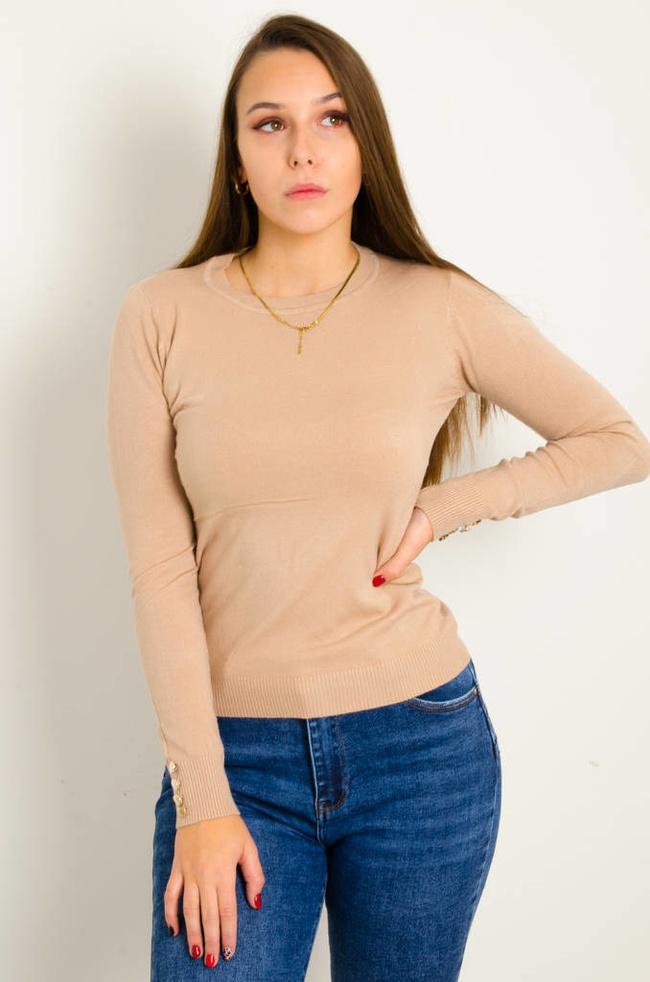 SWETER Z OZDOBNYMI GUZIKAMI- BRĄZOWY