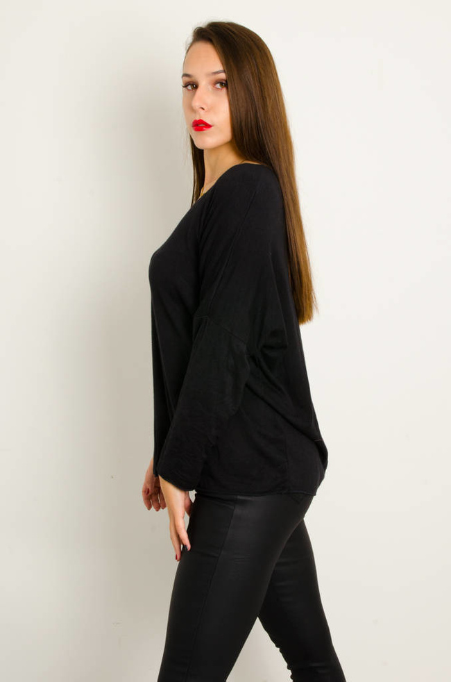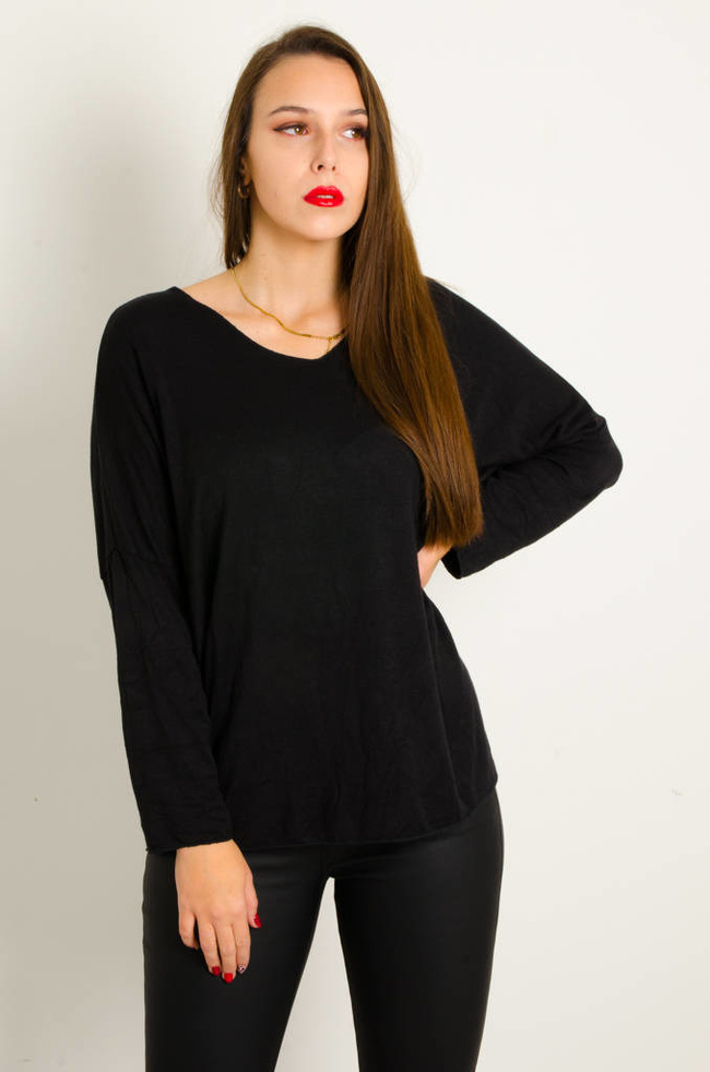 SWETERKOWA BLUZKA Z DEKOLTEM W SEREK- CZARNA