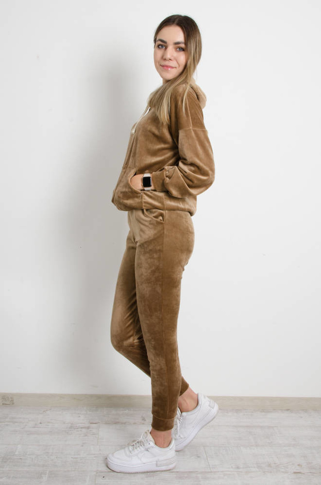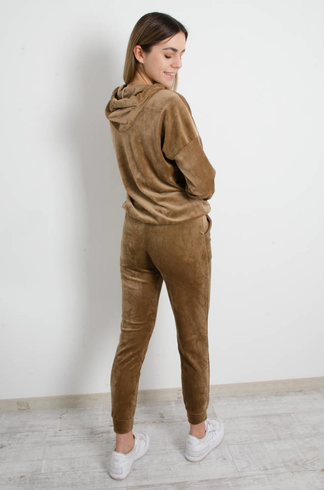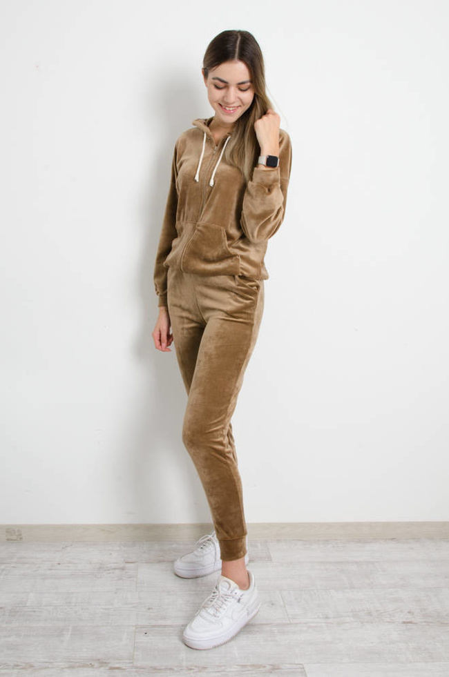 WELUROWY KOMPLET DRESOWY ROZPINANY Z KAPTUREM- BRĄZOWY