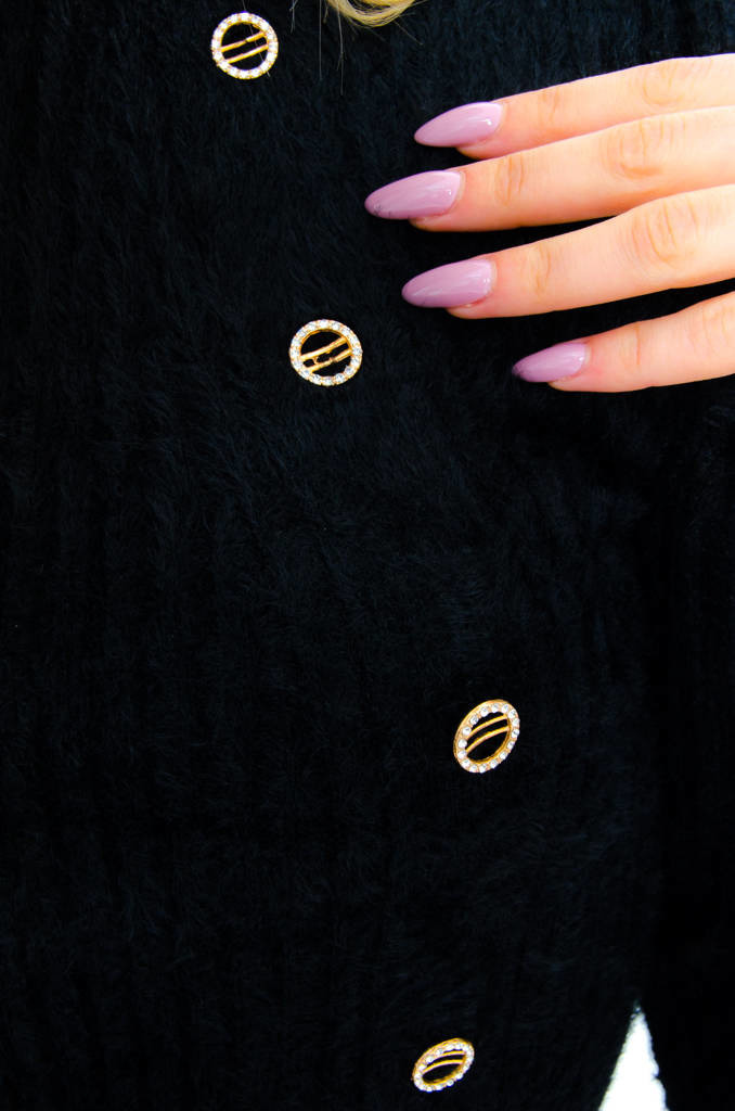 CZARNY SWETER Z OZDOBNYMI GUZIKAMI- PÓŁGOLF