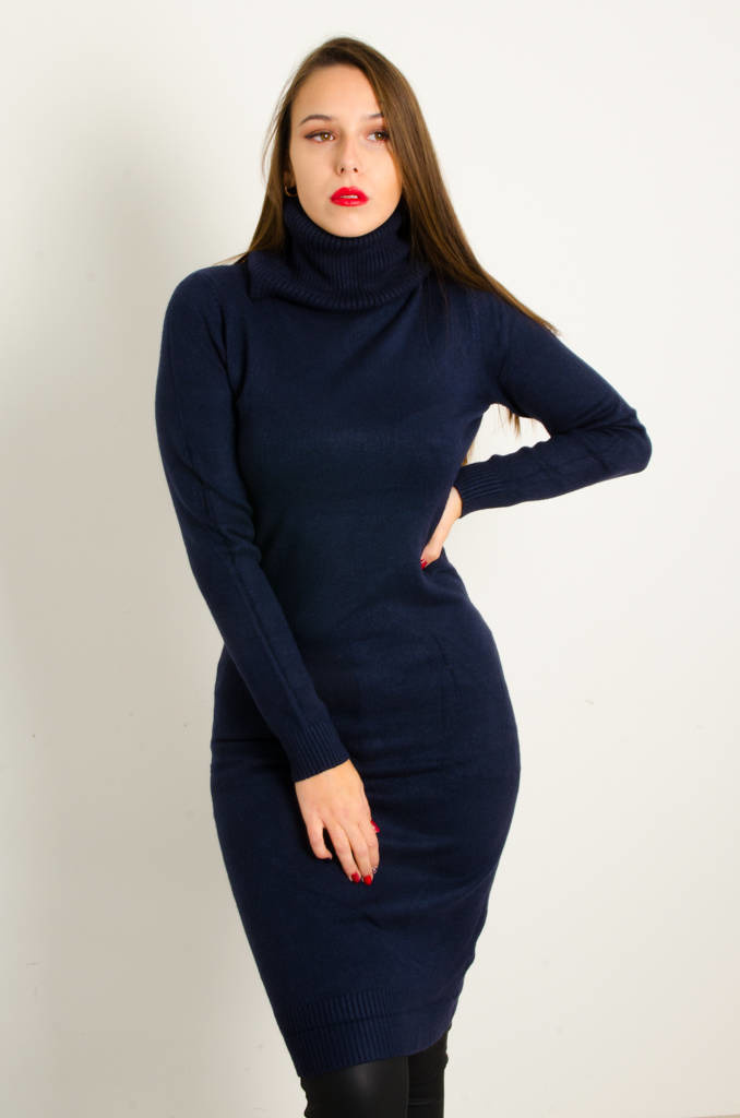 SUKIENKA MIDI SWETERKOWA Z GOLFEM- GRANATOWA