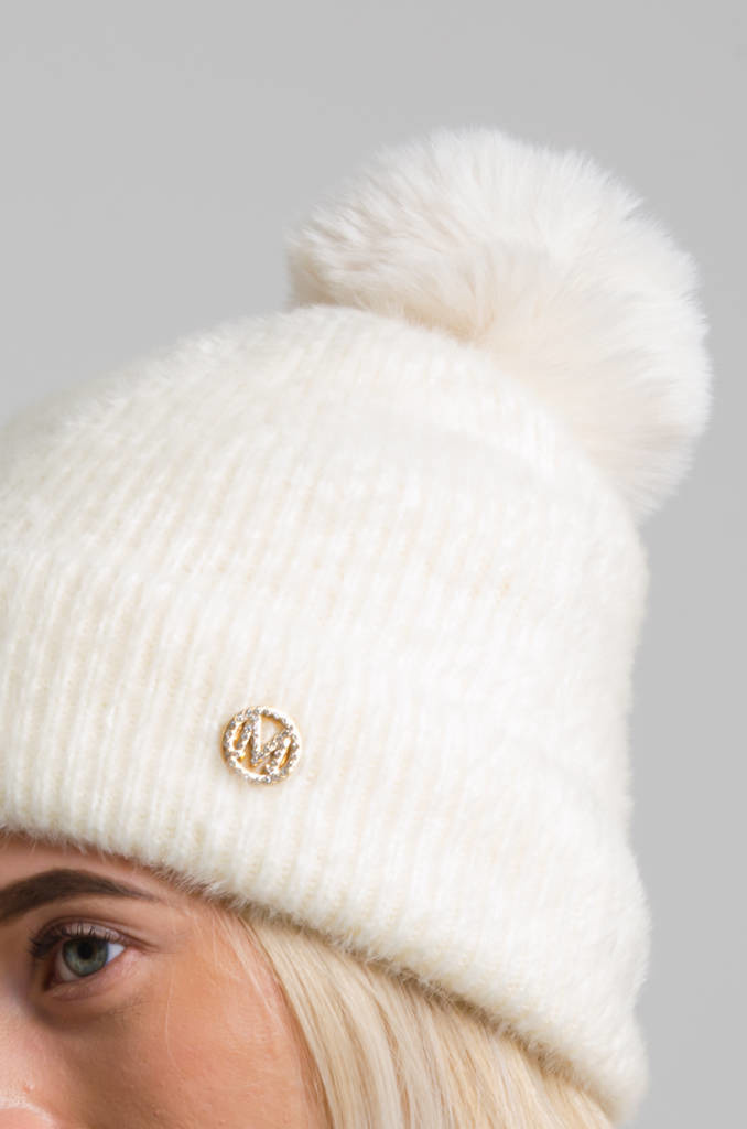 FUTRZANA CZAPKA Z POMPONEM- BIAŁA