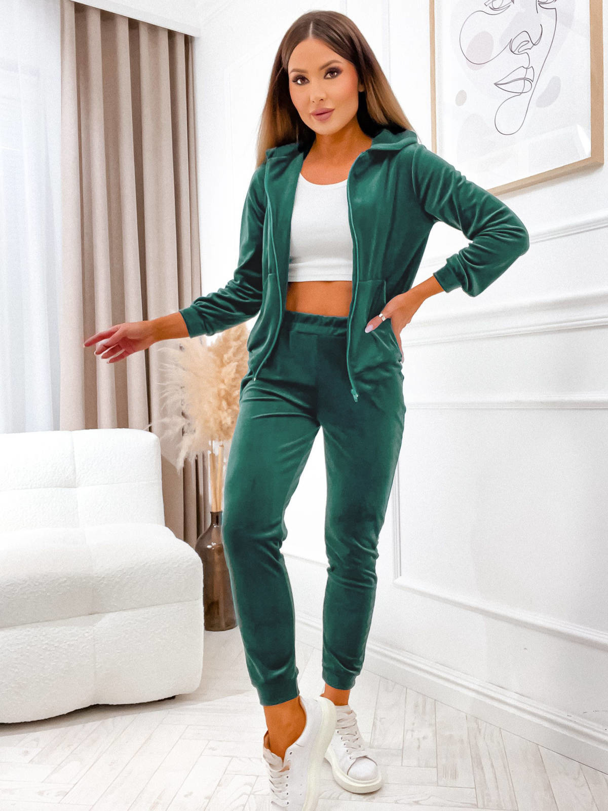 WELUROWY KOMPLET DRESOWY ZAPINANY NA ZAMEK- BUTELKOWA ZIELEŃ