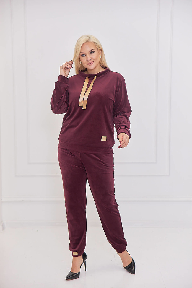 WELUROWY KOMPLET DRESOWY PLUS SIZE- BORDOWY