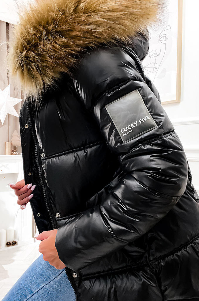 CZARNA KURTKA PIKOWANA Z NASZYWKĄ NA RĘKAWIE