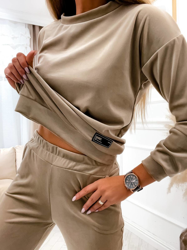 WELUROWY KOMPLET DRESOWY Z NASZYWKĄ- BEŻOWY