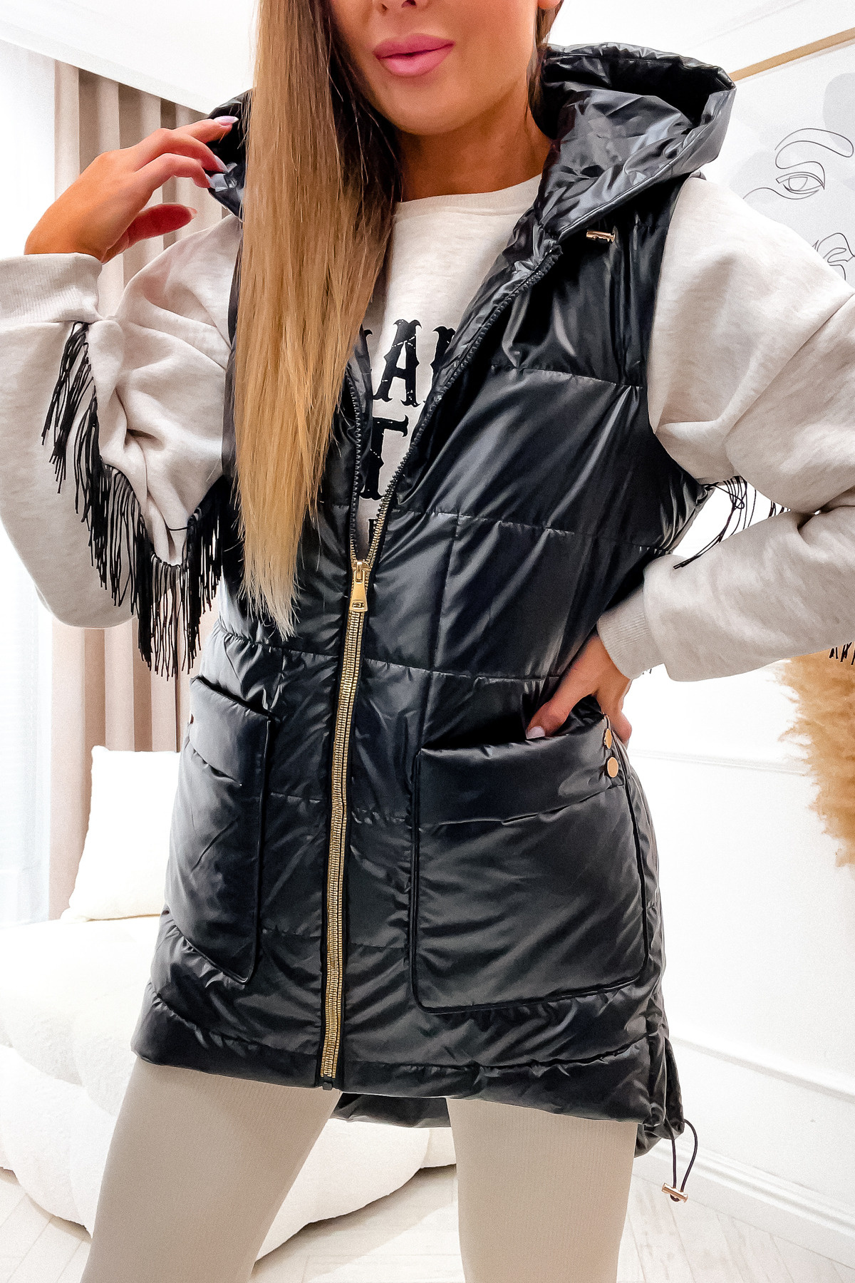 KAMIZELKA ASYMETRYCZNA ZE ZŁOTYMI DODATKAMI- CZARNA