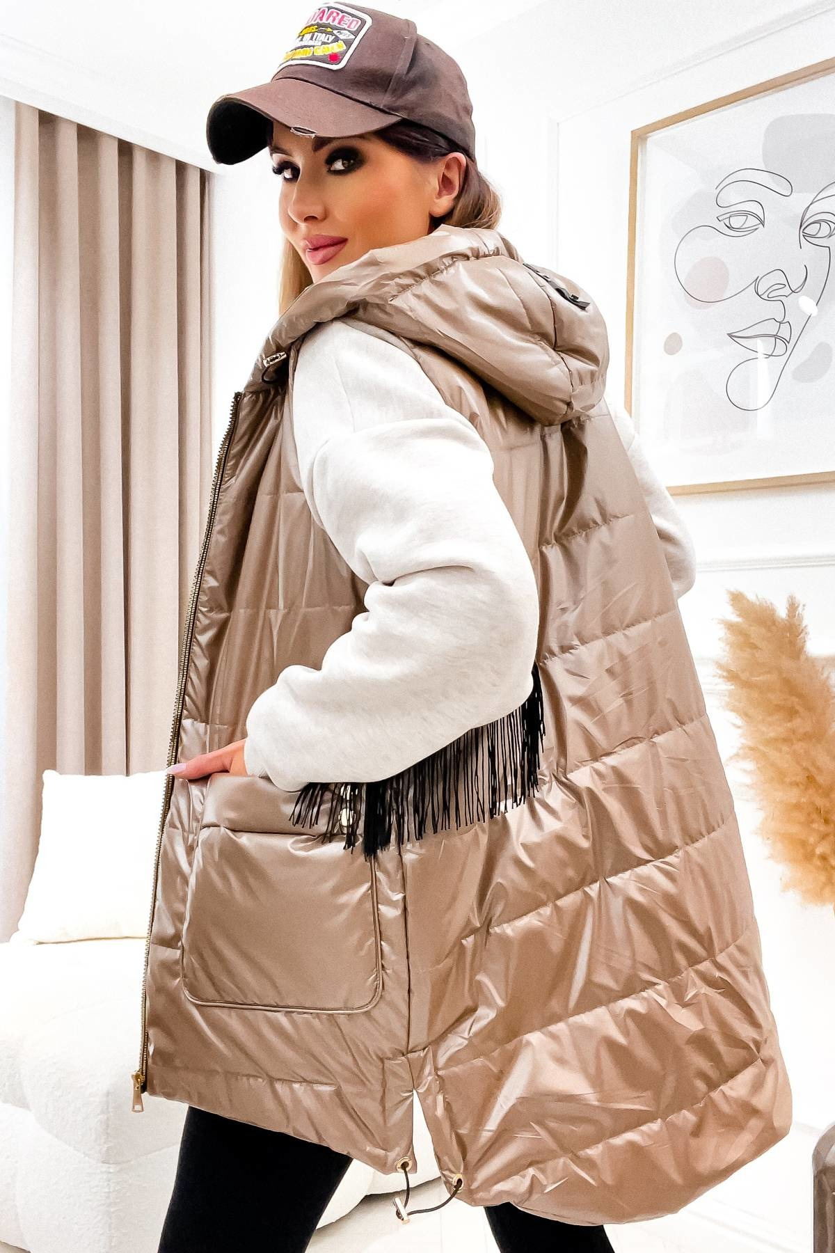 KAMIZELKA ASYMETRYCZNA ZE ZŁOTYMI DODATKAMI- BRĄZOWA
