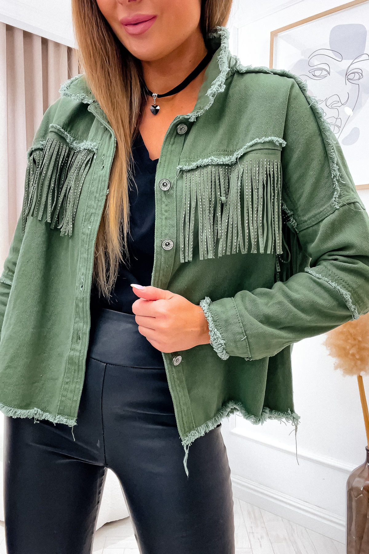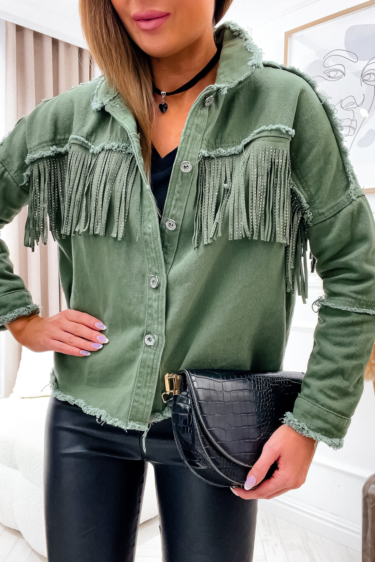 ZIELONA KURTKA JEANSOWA Z FRĘDZLAMI