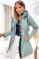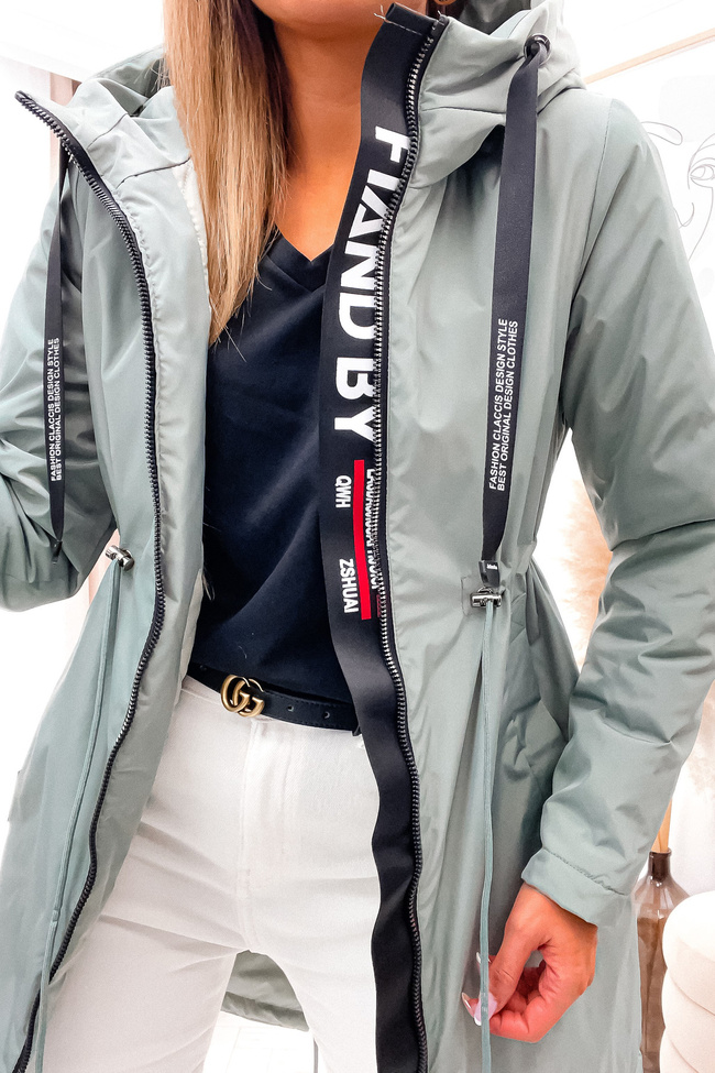 KURTKA PARKA Z KAPTUREM I ŚCIĄGACZEM W PASIE- ZIELONA