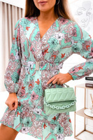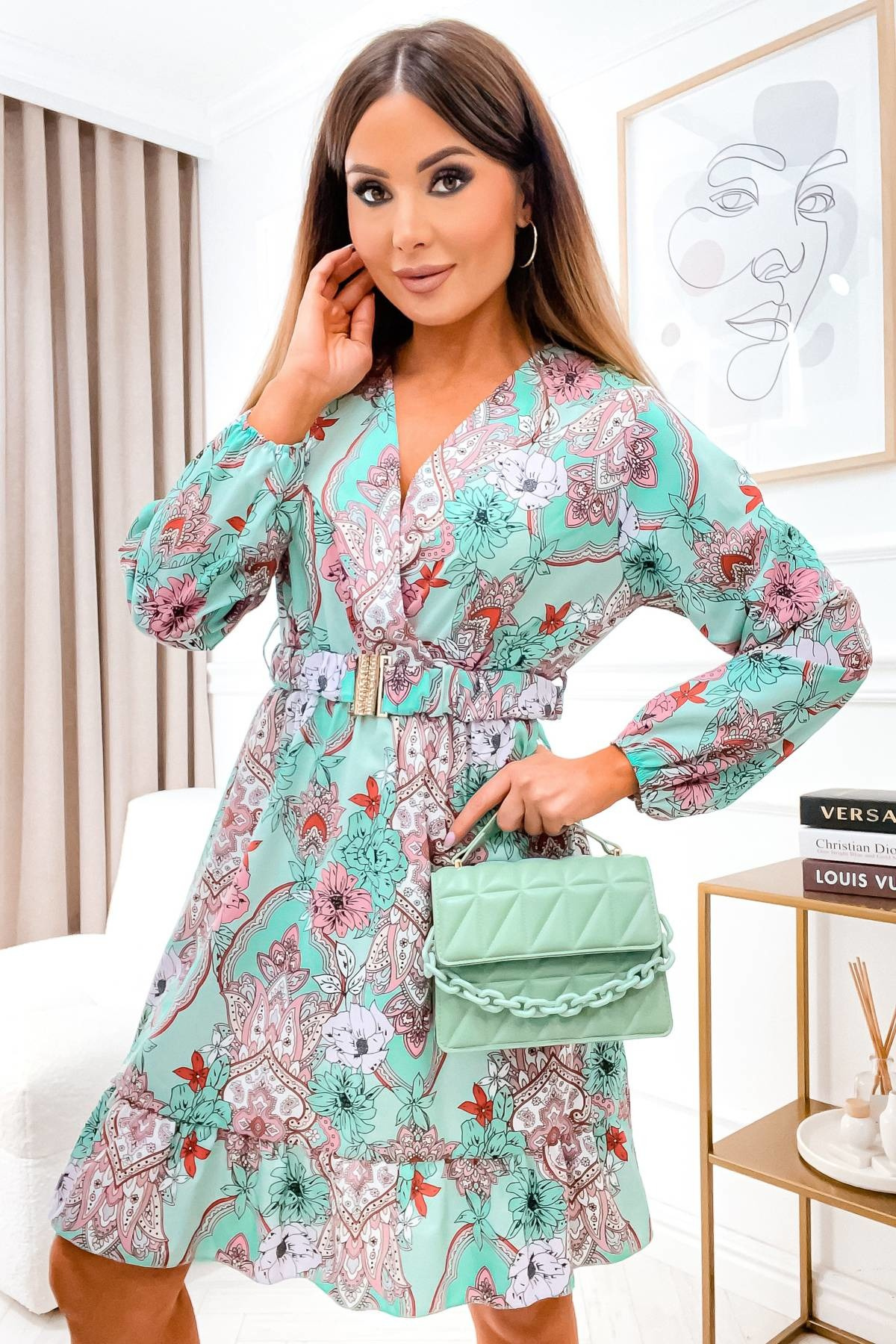 WZORZYSTA SUKIENKA Z PASKIEM- ZIELONA