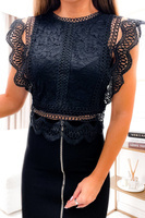 AŻUROWA BLUZKA Z OZDOBNYM ZAMKIEM- CZARNA