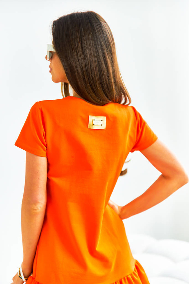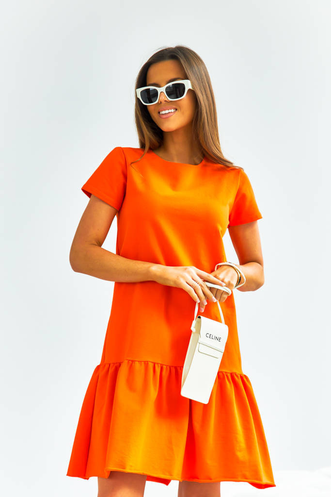 BAWEŁNIANA SUKIENKA Z FALBANĄ- POMARAŃCZOWA