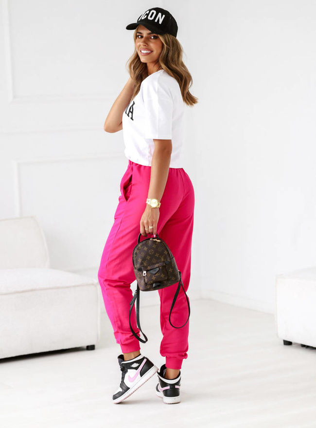 KOMPLET DRESOWY Z NAPISEM T-SHIRT+ SPODNIE- FUKSJA