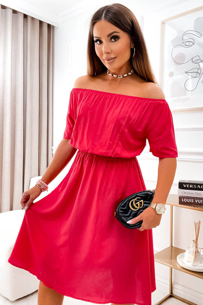 CZERWONA SUKIENKA HISZPANKA MIDI Z GUMKĄ W PASIE