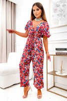 KOMBINEZON W KWIATY Z WIĄZANIEM W PASIE- ZIELONY