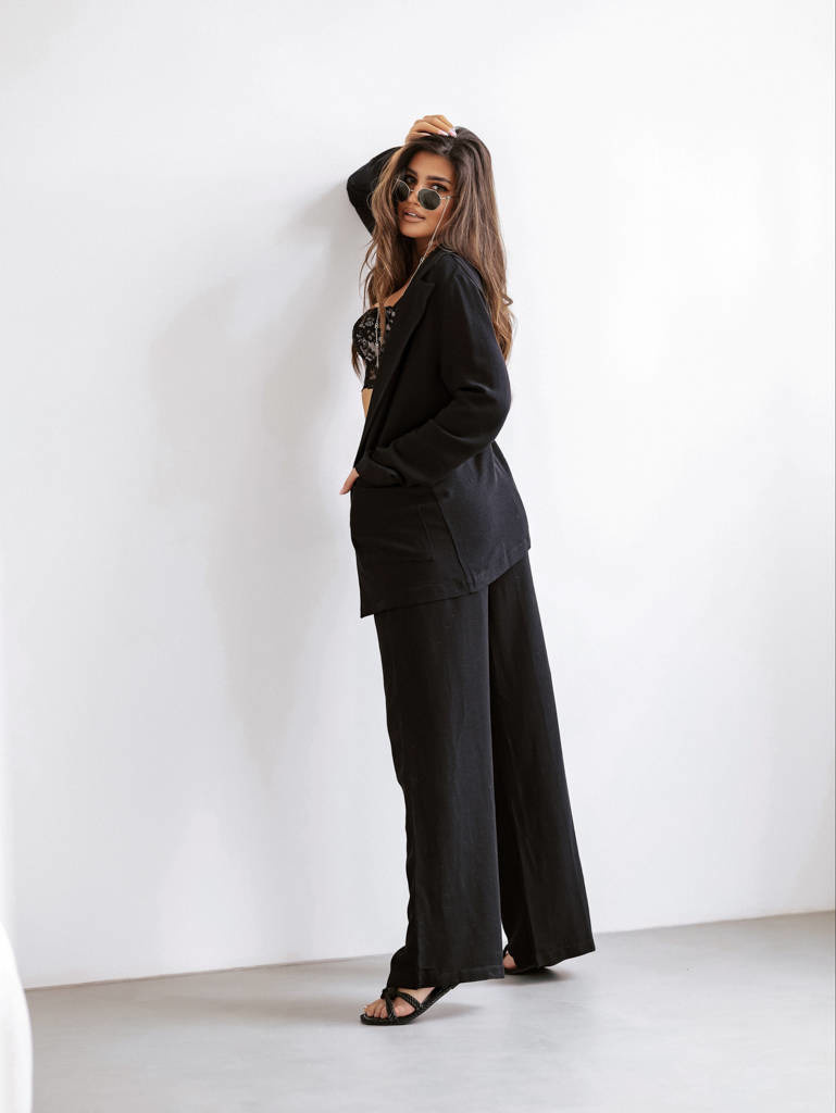 LNIANY KOMPLET MARYNARKA+ SPODNIE- CZARNY