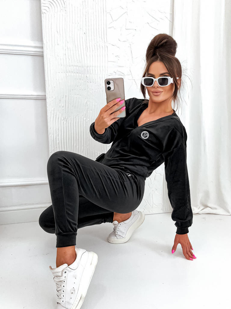 WELUROWY KOMPLET DRESOWY BLUZA W SZPIC + SPODNIE Z NASZYWKĄ- CZARNY