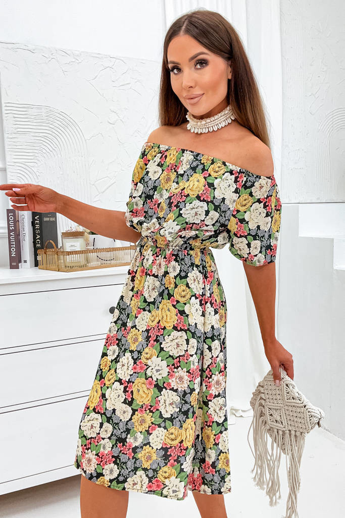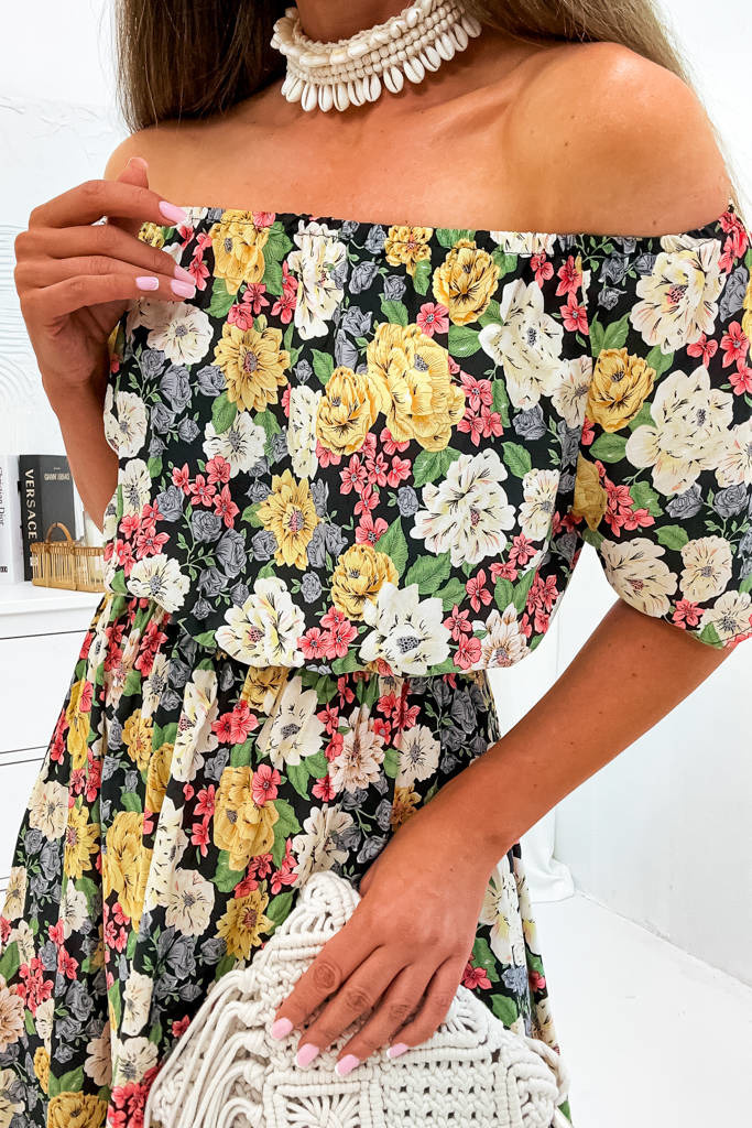SUKIENKA W KWIATY Z GUMKĄ W PASIE- CZARNA