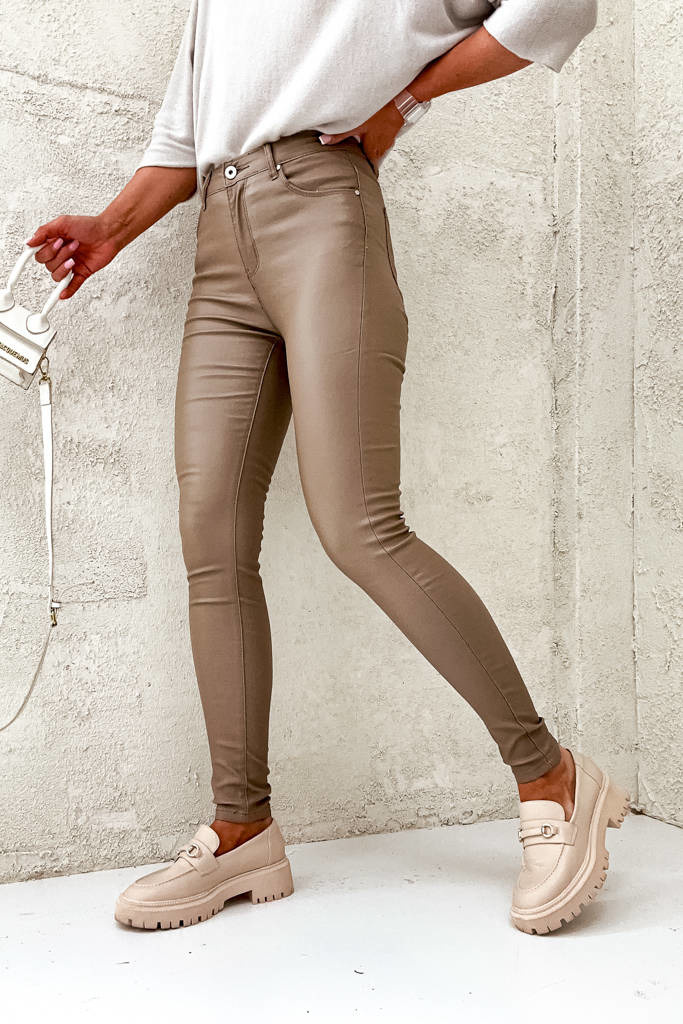 BRĄZOWE SPODNIE WOSKOWANE Z WYSOKIM STANEM- IMITACJA SKÓRY