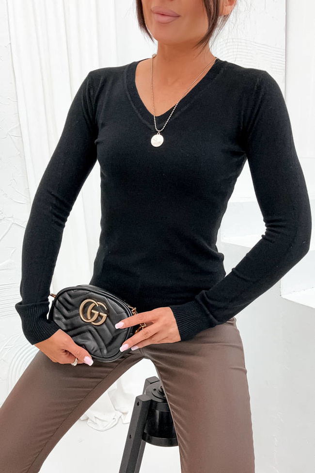 SWETEREK W DEKOLTEM W SZPIC I ŚCIĄGACZAMI- CZARNY