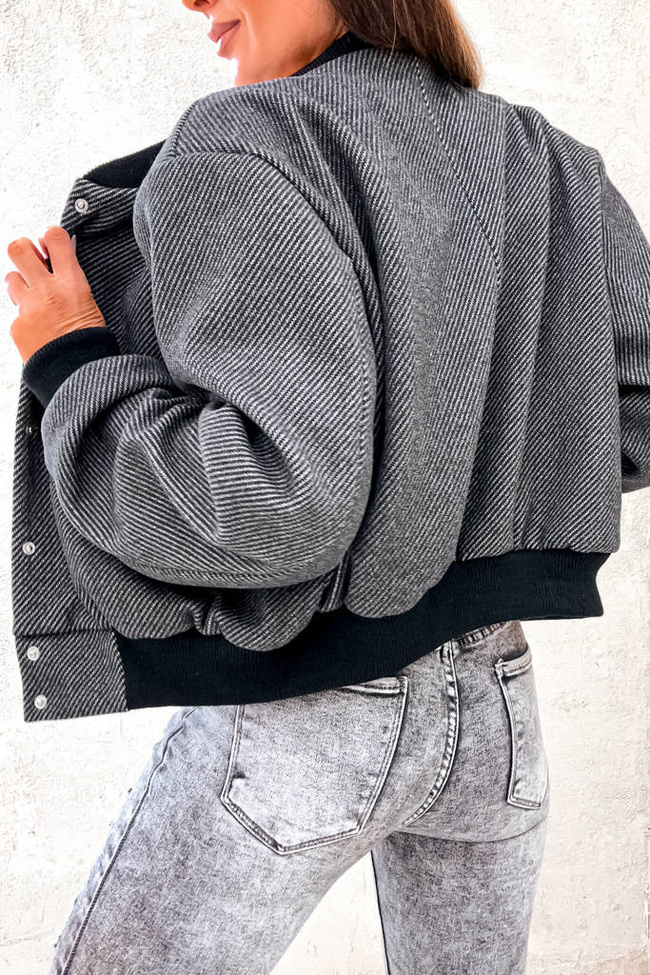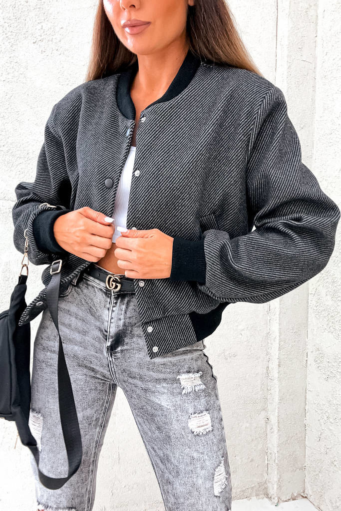 KURTKA OVERSIZE BOMBERKA ZAPINANA NA GUZIKI- CIEMNO SZARA