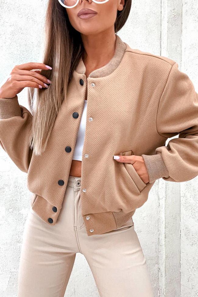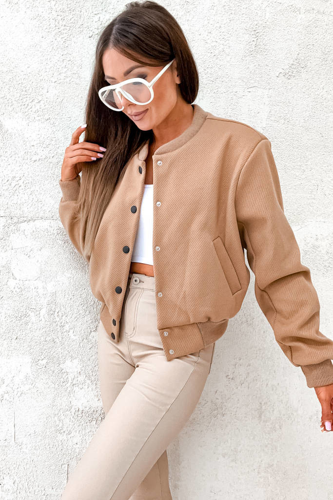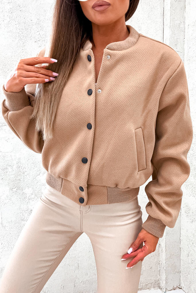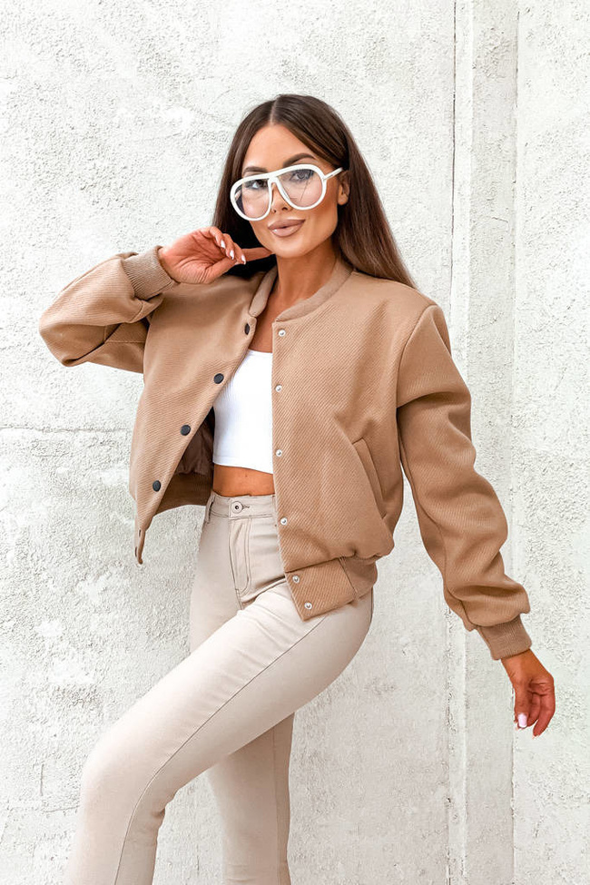 KURTKA OVERSIZE BOMBERKA ZAPINANA NA GUZIKI- BRĄZOWA