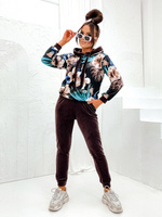 WELUROWY KOMPLET DRESOWY W KWIATY- CZARNY