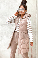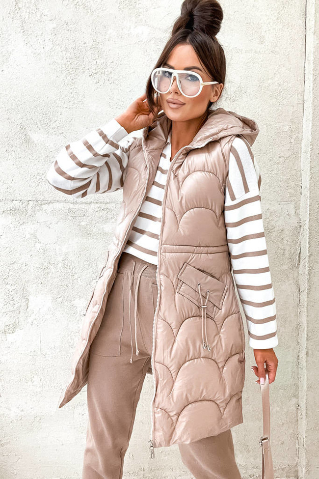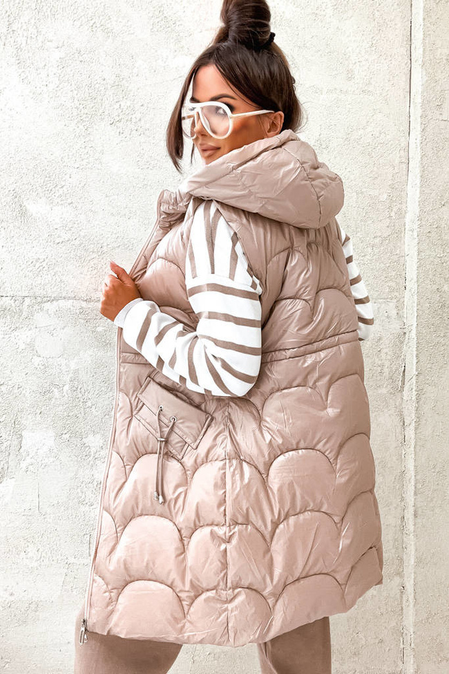 KAMIZELKA Z KAPTUREM I OZDOBNYMI KIESZENIAMI- BEŻOWA