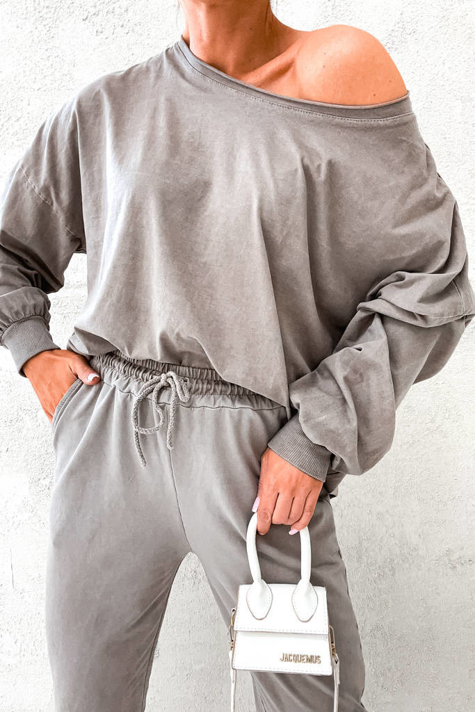 KOMPLET OVERSIZE SPODNIE+ BLUZA- BRĄZOWY