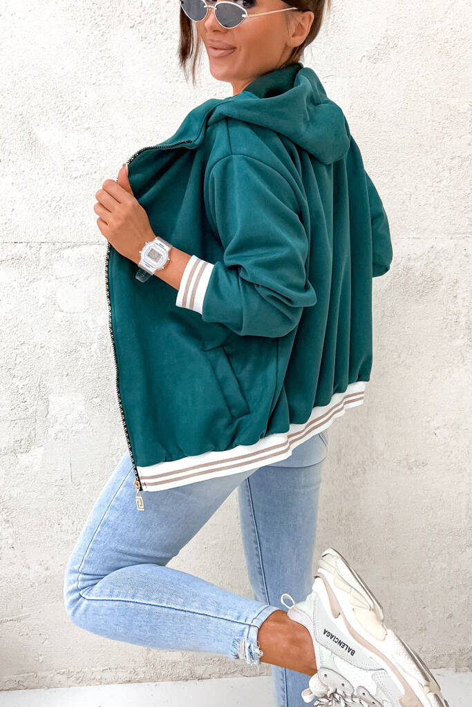 BLUZA ZAMSZOWA Z KONTRASTOWYMI ŚCIĄGACZAMI- ZIELONA