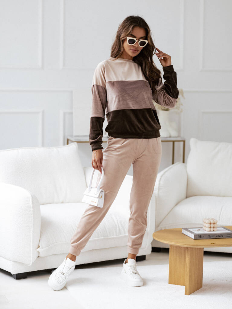 KOMPLET DRESOWY SPODNIE+ BLUZA W PASKI - BEŻOWY