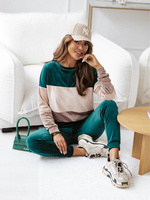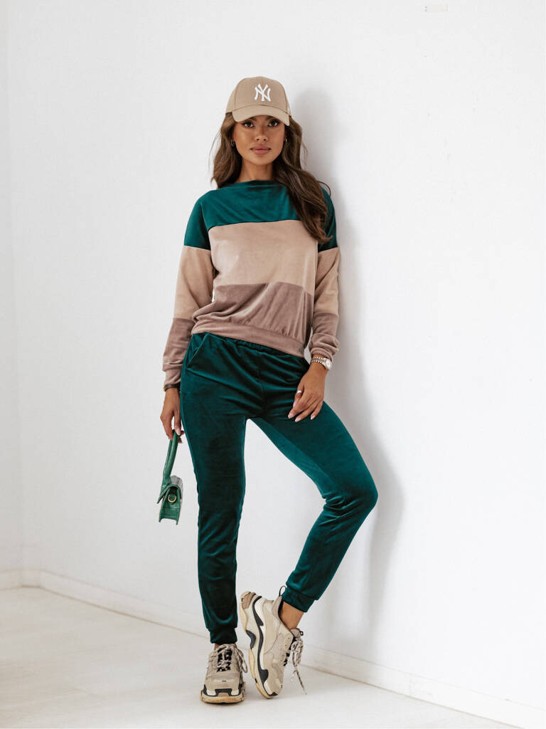 KOMPLET DRESOWY SPODNIE+ BLUZA W PASKI - BUTELKOWA ZIELEŃ