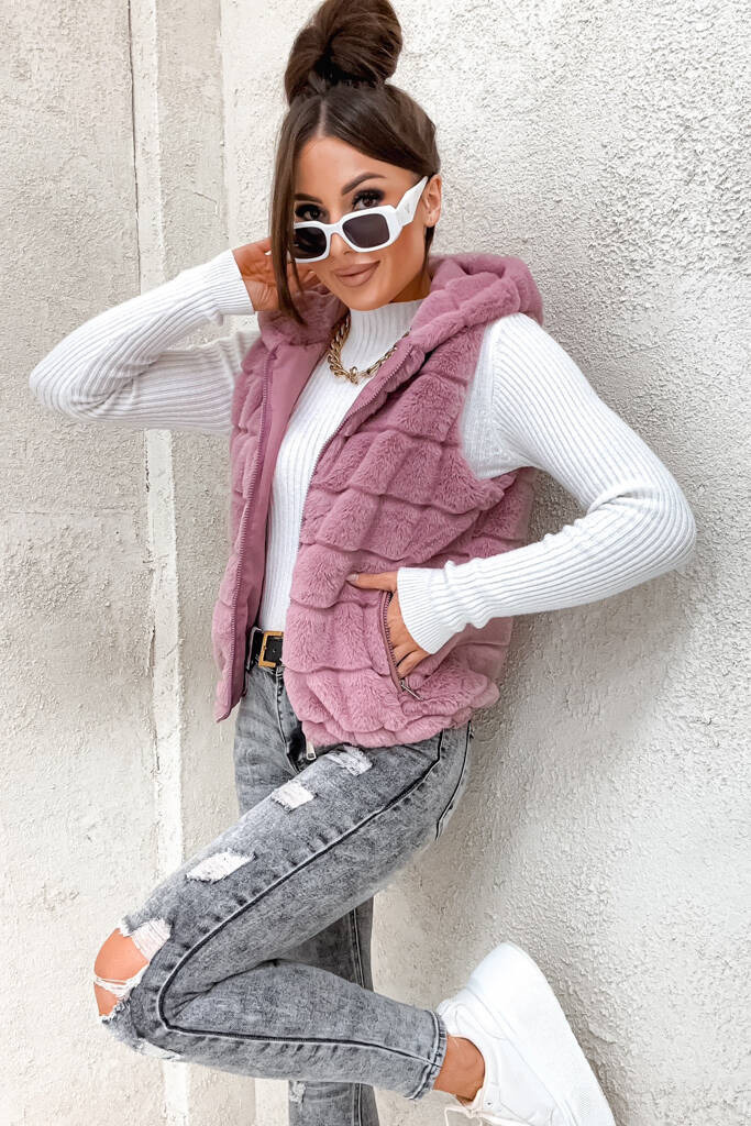 CIEMNO RÓŻOWA FUTRZANA KAMIZELKA - BEZRĘKAWNIK