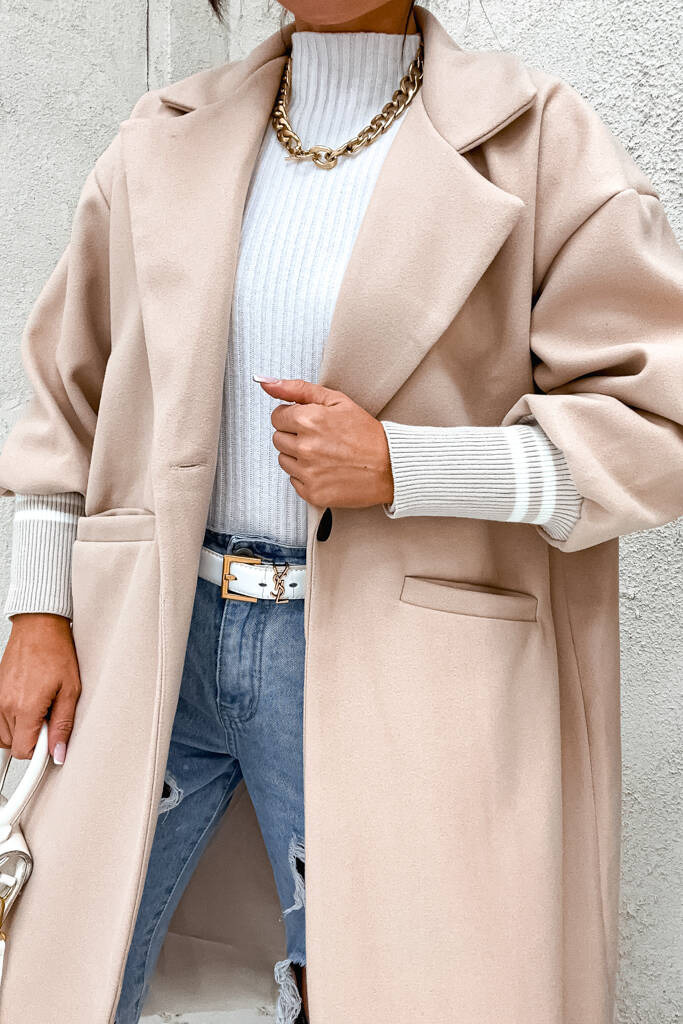 BEŻOWY PŁASZCZ ZE ŚCIĄGACZAMI PRZY RĘKAWACH