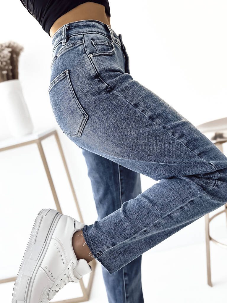 SPODNIE JEANSOWE MOM STRETCH Z PRZETARCIAMI I WYSOKIM STANEM- GRANATOWE