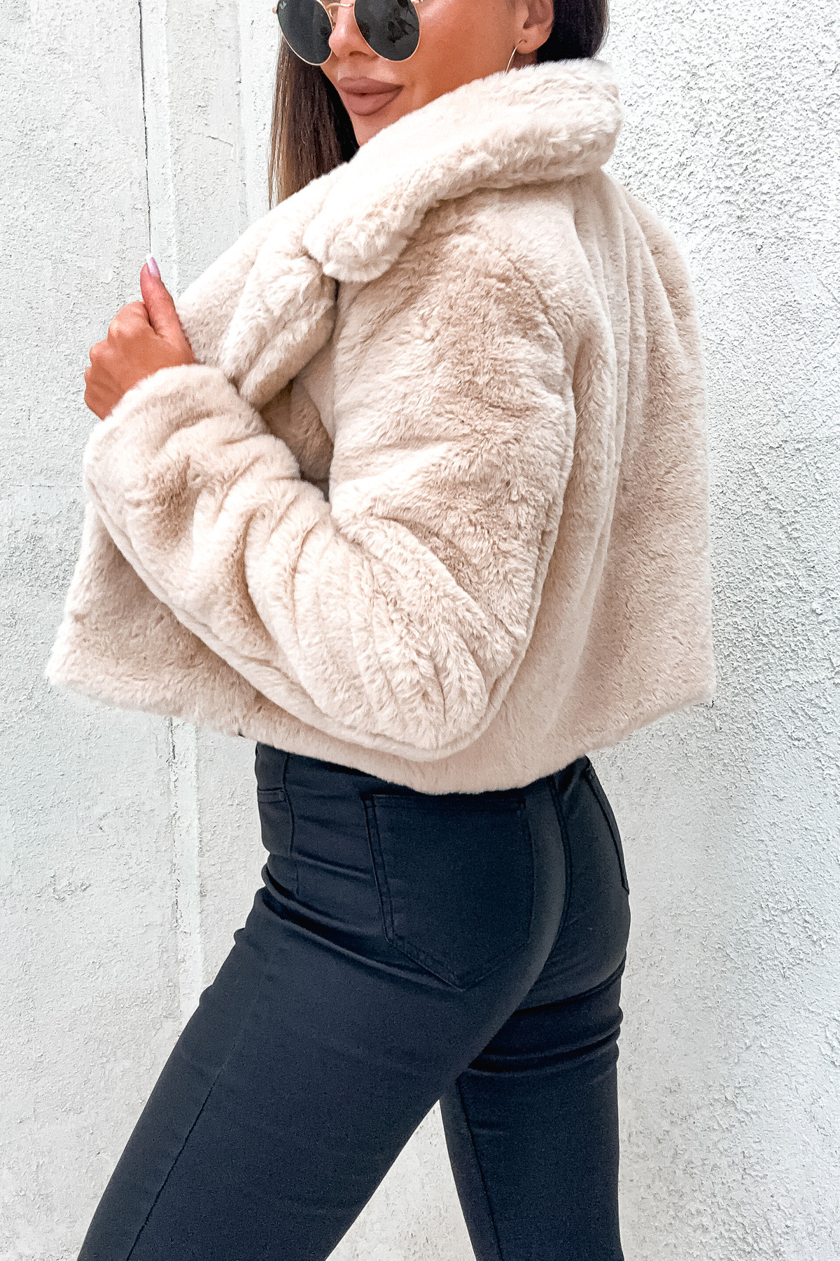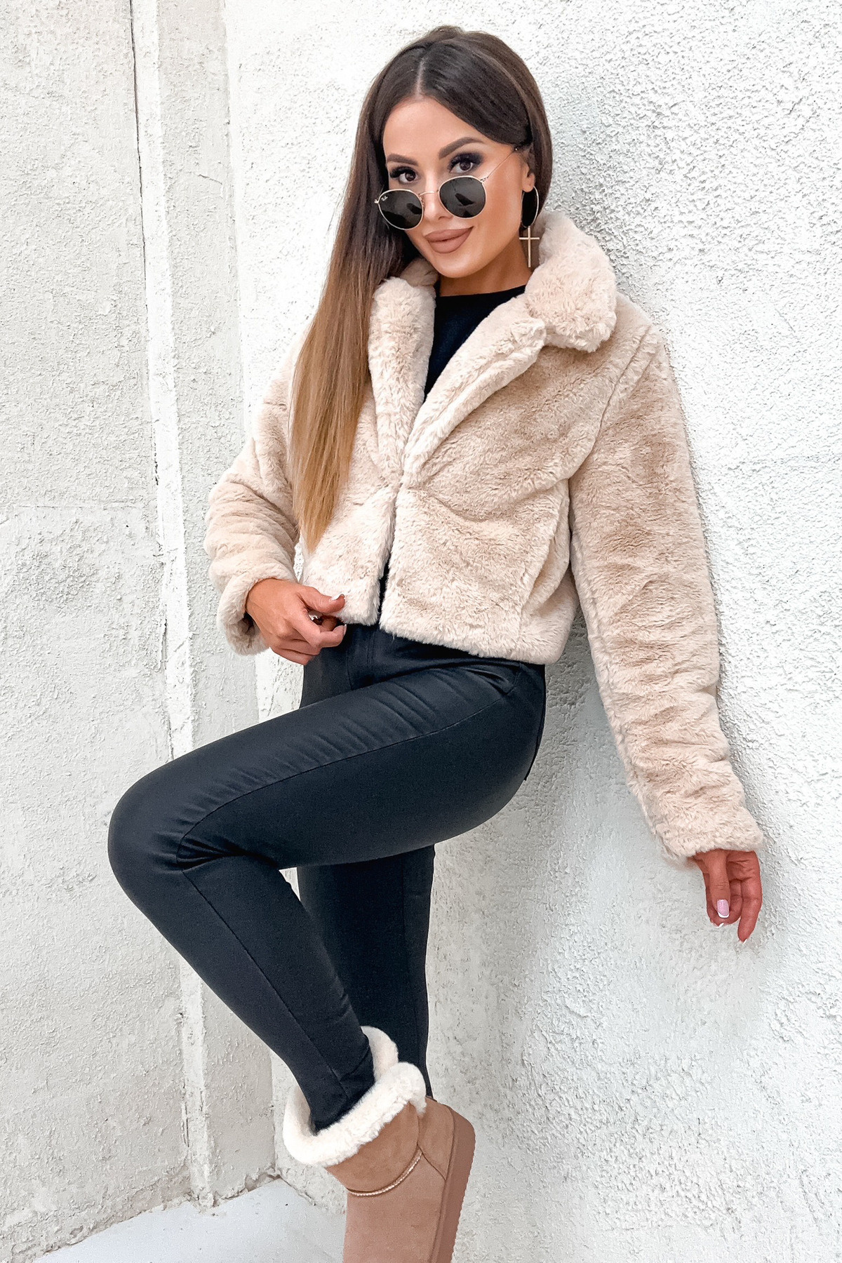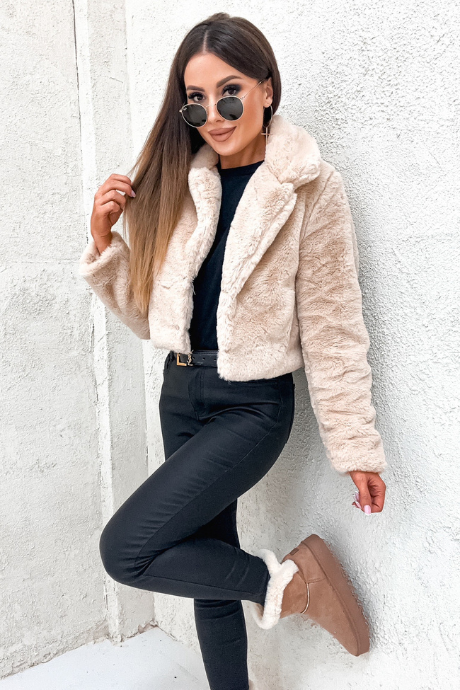 KRÓTKA FUTRZANA KURTKA- BEŻOWA