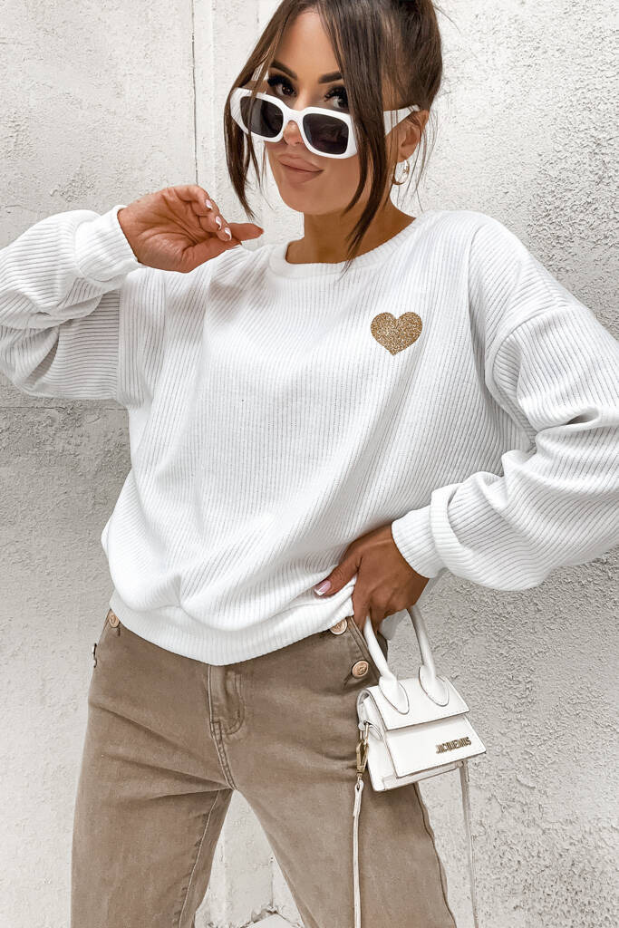 BLUZKA OVERSIZE W PRĄŻKI Z SERCEM- BIAŁA