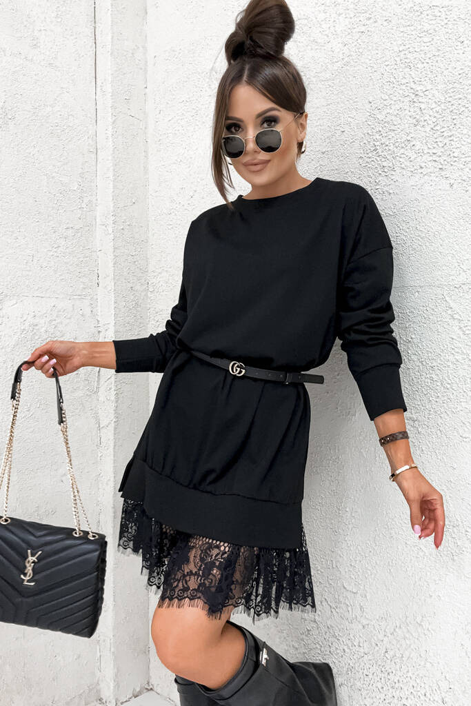 CZARNA SUKIENKA OVERSIZE DRESOWA Z KORONKĄ