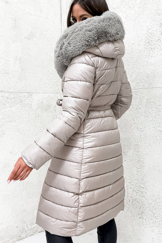 PIKOWANY PŁASZCZ ZE ZŁOTYMI GUZIKAMI I PASKIEM- BEŻOWY