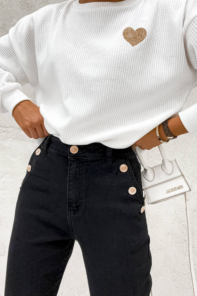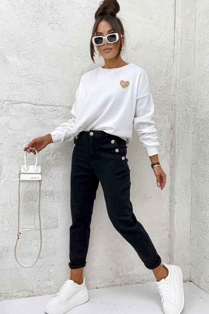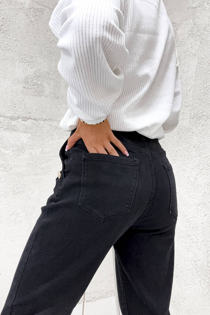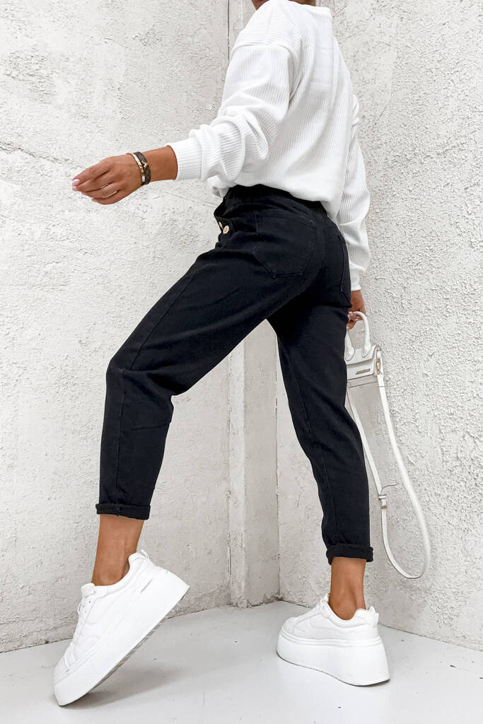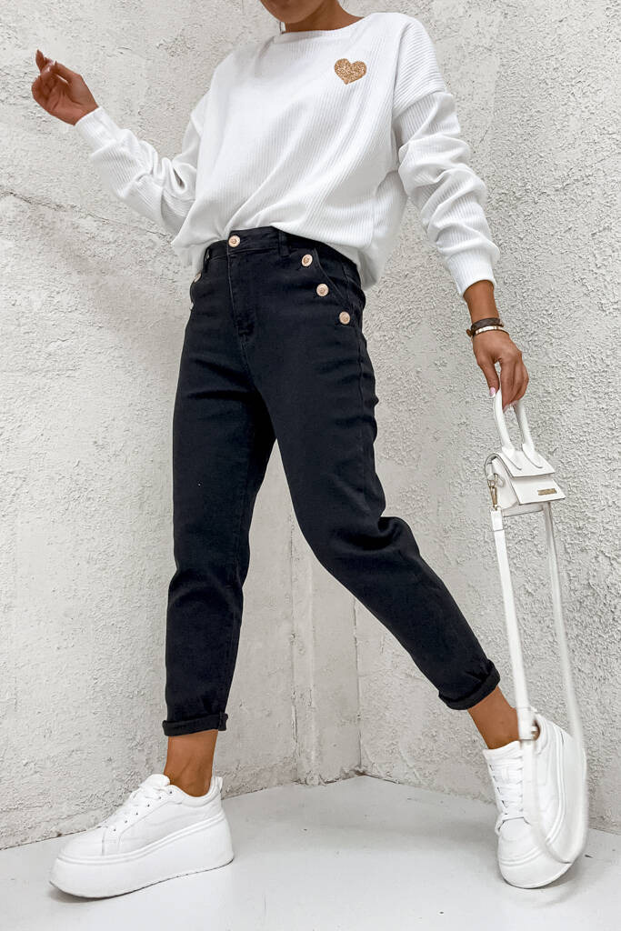 SPODNIE MOM FIT Z OZDOBNYMI GUZIKAMI NA KIESZENIACH - CZARNE