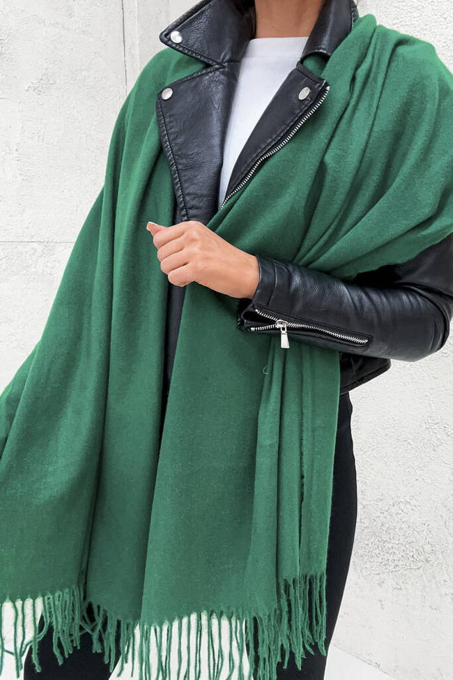 KLASYCZNY SZAL Z FRĘDZLAMI- ZIELONY