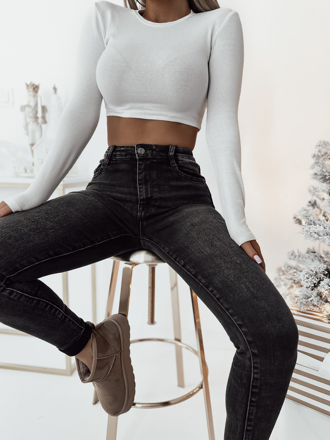 SPODNIE JEANSOWE SKINNY Z WYSOKIM STANEM- GRAFITOWE