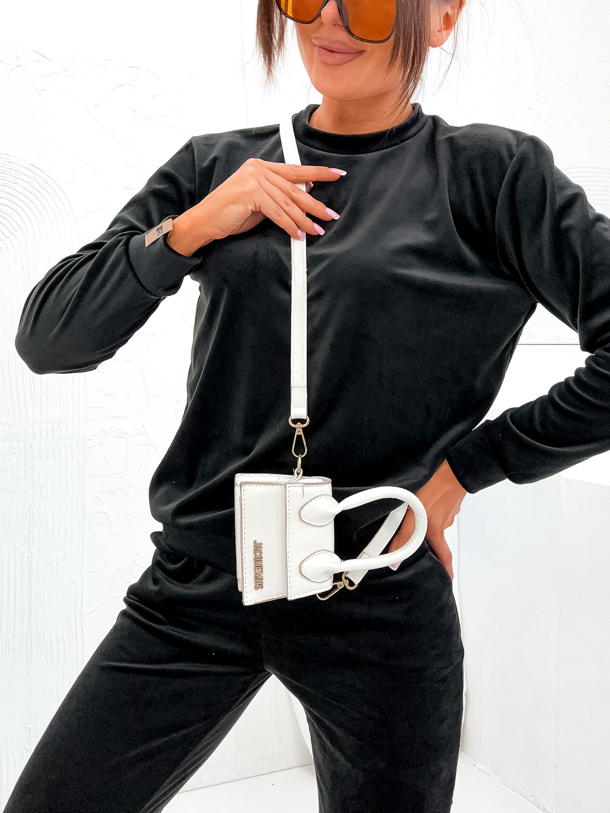 WELUROWY KOMPLET DRESOWY Z NASZYWKĄ NA RĘKAWIE- CZARNY