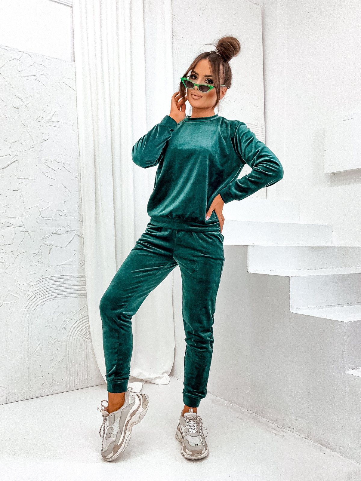 WELUROWY KOMPLET DRESOWY Z NASZYWKĄ NA RĘKAWIE- BUTELKOWA ZIELEŃ