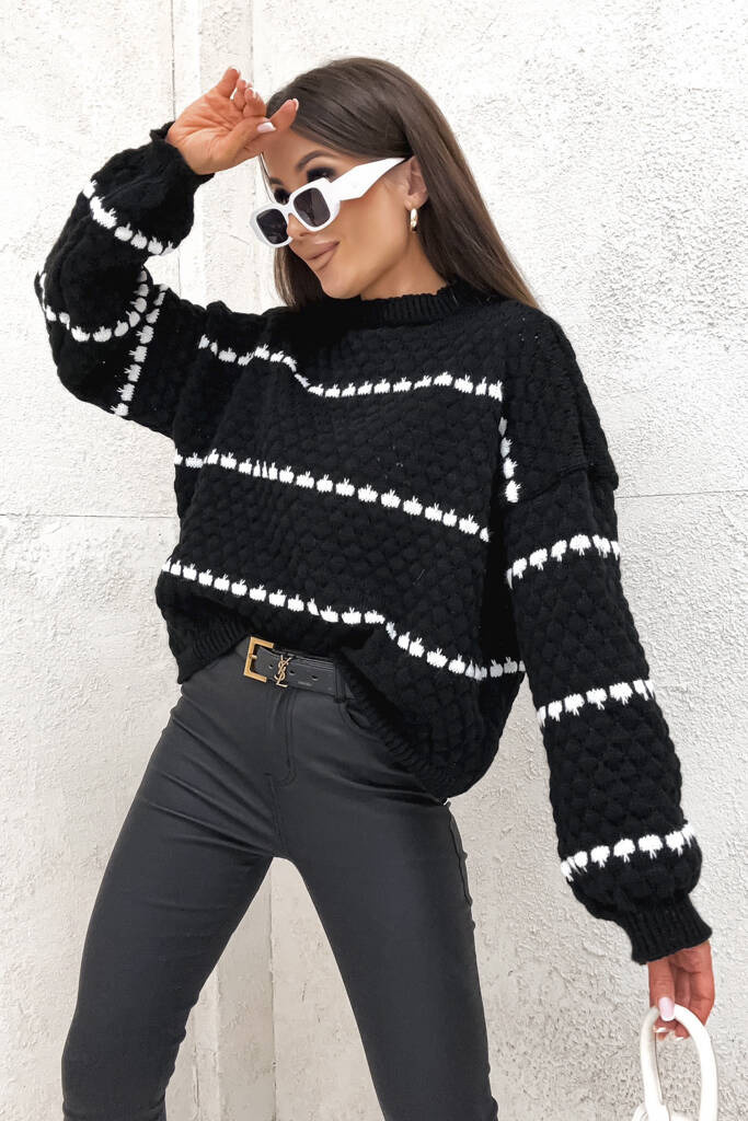 CZARNY SWETER W PASKI Z SZEROKIMI RĘKAWAMI I PÓŁGOLFEM